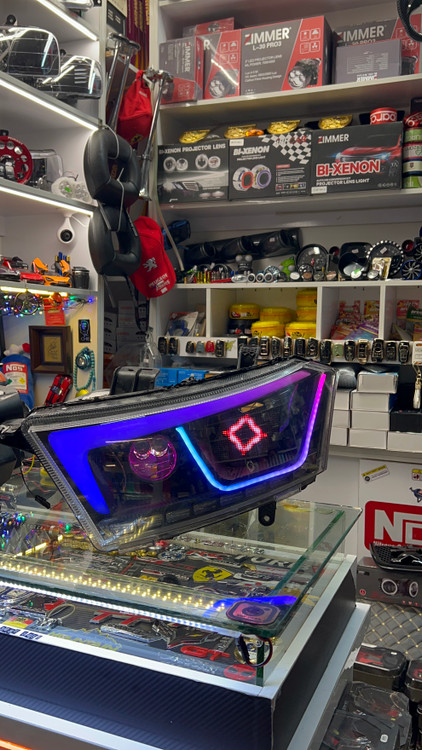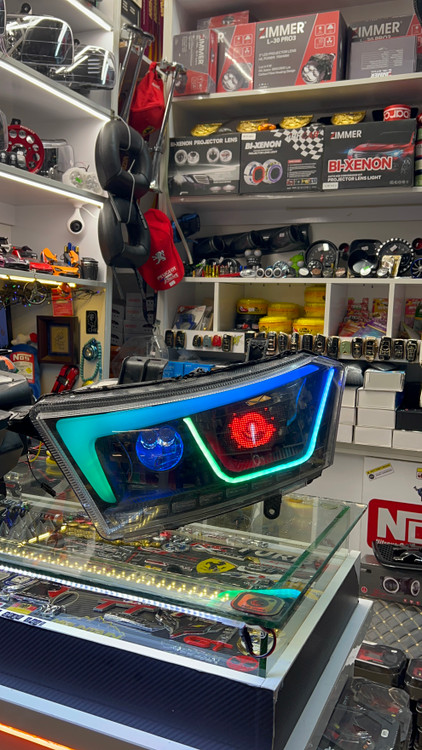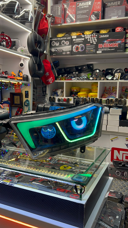 این محصول یک جفت صفحه ال ای دی میباشد که داخل چراغ موتور یا خودرو نصب میشود و با برنامه خود از طریق موبایل هر عکسی را پخش میکند