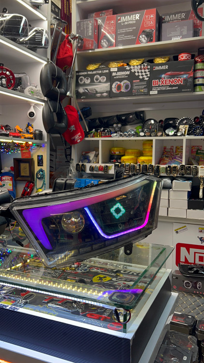 خودروها: این محصول یک جفت صفحه ال ای دی میباشد که داخل چراغ موتور یا خودرو نصب میشود و با برنامه خود از طریق موبایل هر عکسی را پخش میکند